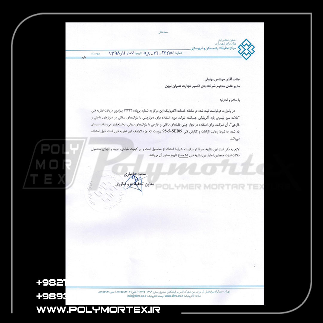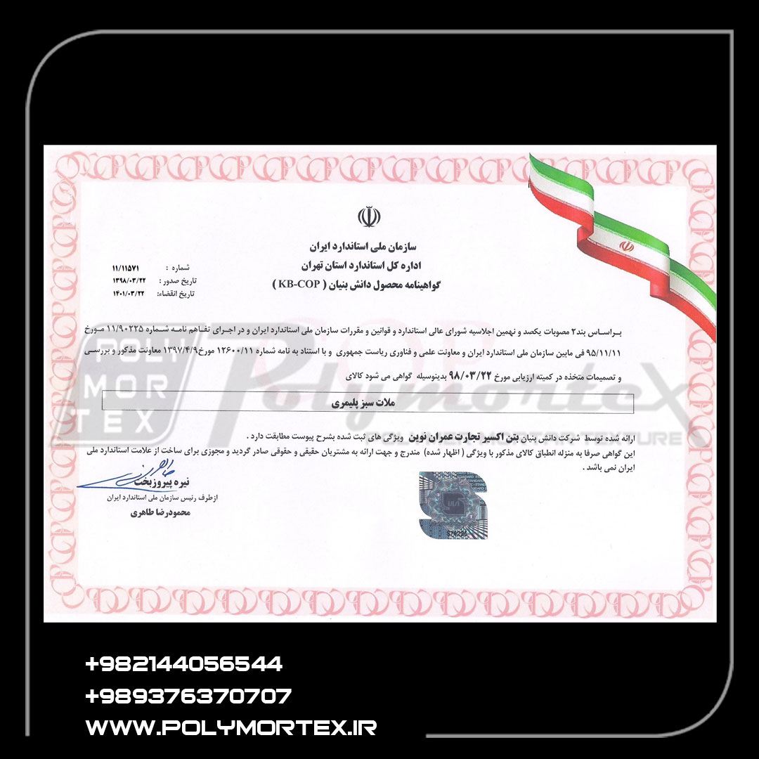 این پست به #تاییدیه ها، #گواهینامه ها و #استاندارد های محصول #ملات_سبز_پلیمری با برند ثبتی #پلیمورتکس می پردازد.